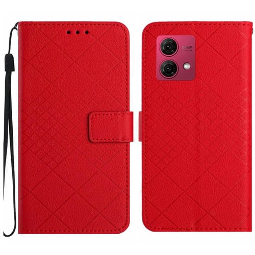 Funda de Cuero para Motorola Moto G84 5G con Textura de Rejilla Rómbica (Rojo)