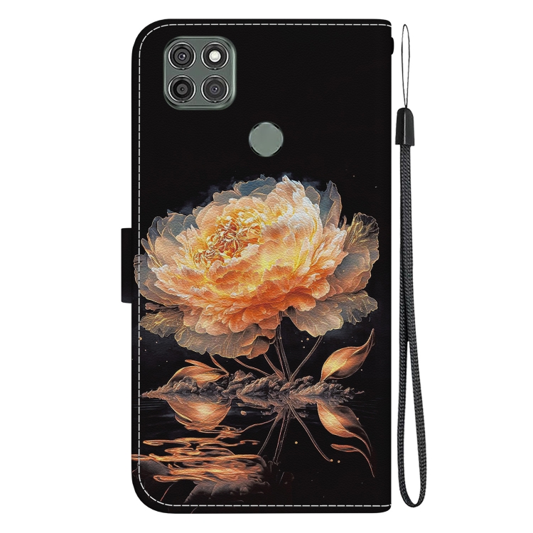 Funda de Cuero para Motorola Moto G9 Power con Dibujo Coloreado (Peonía Dorada)