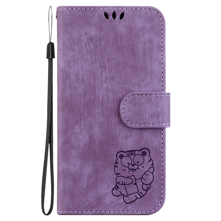 Funda para Motorola Moto X30 Pro 5G de Cuero con Relieve Little Tiger (Púrpura)