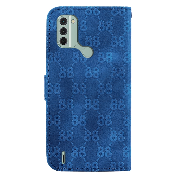 Estuche para Nokia C21 Plus de Cuero en Relieve con Doble Forma de 8 (Azul)