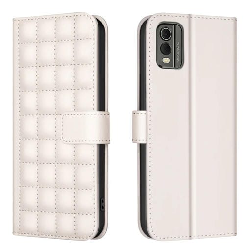 Funda de Cuero para Nokia C32 con Textura Cuadrada (Beige)