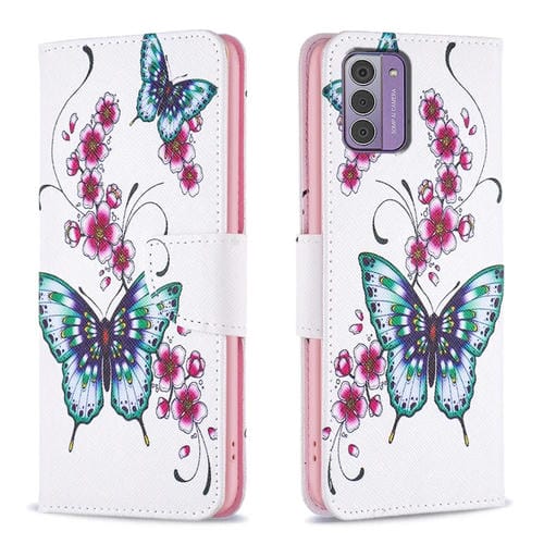 Estuche para Teléfono Nokia G42/G310 de Cuero con Dibujo Mariposa de Flor de Durazno