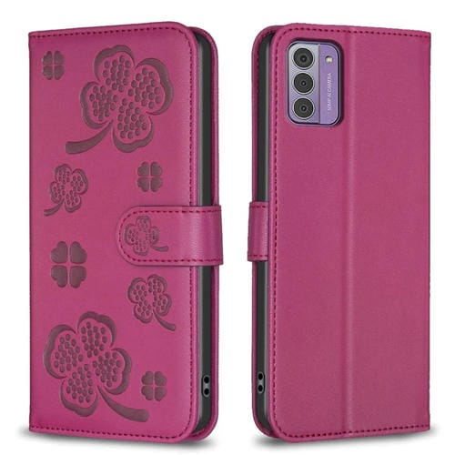 Funda para Teléfono Nokia G42 / G310 de Cuero con Relieve de Cuatro Hojas (Rojo Rosa)