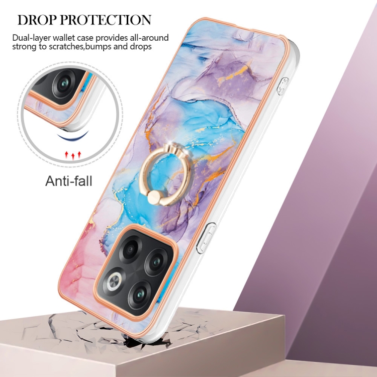 - 1x Funda TPU Galvanoplastia IMD con Anillo para OnePlus 10T 5G Ace Pro (Mármol Azul)