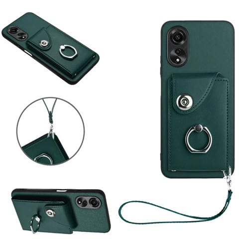 Para Oppo A17 Global Organ Card Bag Ring Holder Pu Funda para Teléfono con Cordón (Verde)