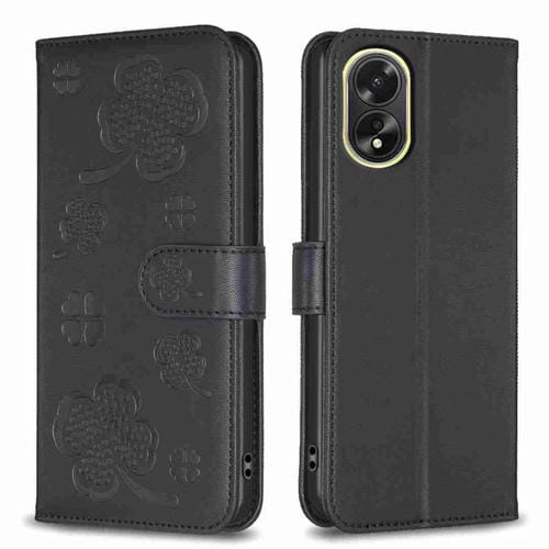 Para Oppo A38 / A18 4G Funda de Cuero con Relieve de Cuatro Hojas (Negro)