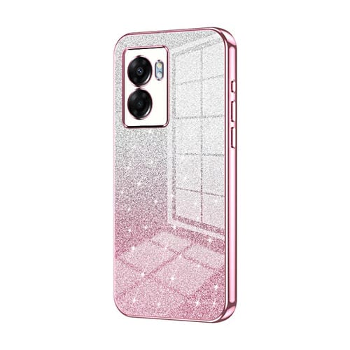Para Oppo A57 5G Estuche para Teléfono Galvanizado con Polvo de Brillo Degradado (Rosa)