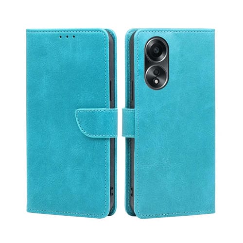 Para Oppo A58 4G Funda para Teléfono de Cuero con Tapa con Hebilla y Textura de Becerro (Azul Claro)