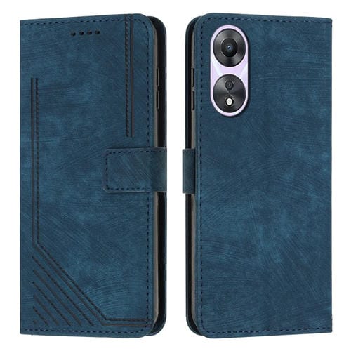 Para Oppo A58 / A78 Skin Feel Funda de Cuero para Teléfono con Patrón de Rayas y Cordón Largo (Azul)