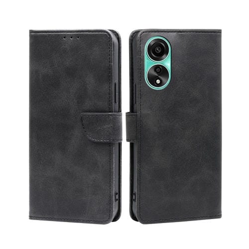 Para Oppo A78 4G Funda de Teléfono de Cuero con Tapa con Hebilla y Textura de Becerro (Negro)