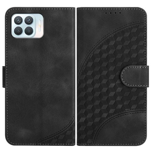 Para Oppo A93 4G / F17 Pro / Reno4 Lite / Reno4 F Yx0060 Funda de Cuero para Teléfono con Relieve y Cabeza de Elefante con Cordón (Negro)