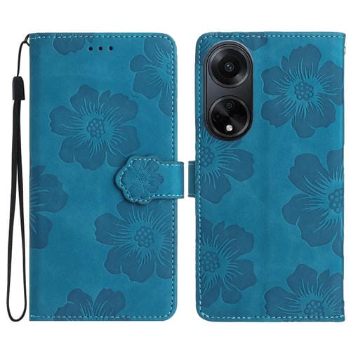 Para Oppo A98 5G Funda de Cuero para Teléfono con Estampado de Flores (Azul)