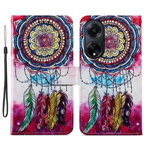 Para Oppo A98 Funda de Teléfono de Cuero con Tapa Horizontal con Patrón Pintado (Atrapasueños)