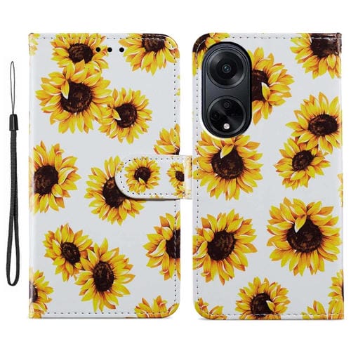 Para Oppo A98 Funda de Teléfono de Cuero con Tapa Horizontal con Patrón Pintado (Girasol)