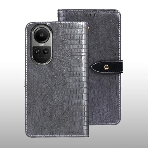 Para Oppo Reno10 / Reno10 Pro Funda para Teléfono de Cuero con Textura de Cocodrilo Global Idewei (Gris)
