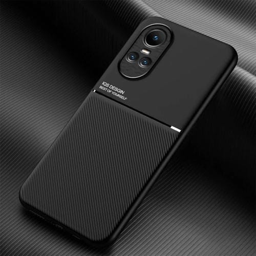 Para Oppo Reno10 / Reno10 Pro Global Classic Tilt Strip Grain Funda para Teléfono PC + TPU Magnética a Prueba de Golpes (Negro)