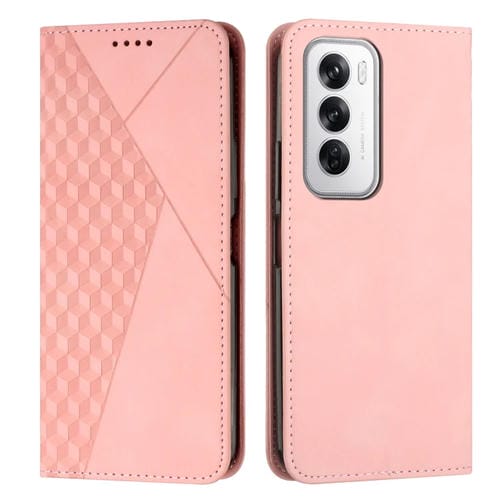 Para Oppo Reno12 5G Global Diamond Splicing Skin Feel Funda de Teléfono de Cuero Magnético (Oro Rosa)