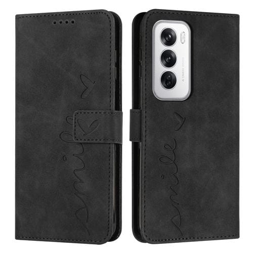 Para Oppo Reno12 5G Global Skin Feel Heart Funda para Teléfono de Cuero En Relieve con Cordón Largo (Negro)