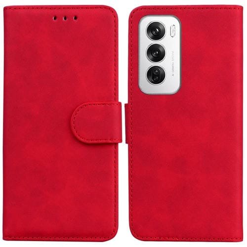 Pour OPPO Reno12 5G Global Skin Feel Étui de téléphone en cuir à rabat de couleur pure (rouge)