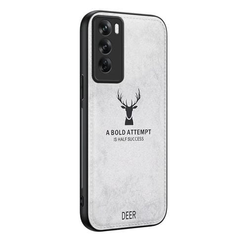Para Oppo Reno12 Global Deer Head Cloth Skin Funda para Teléfono con Todo Incluido (Blanco)