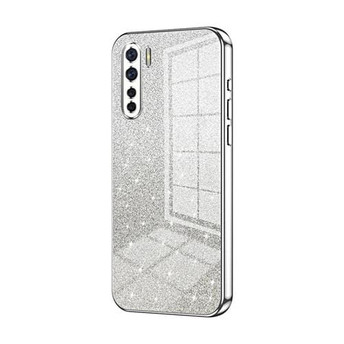 Para Oppo Reno3 4G / F15 / A91 Estuche para Teléfono Galvanizado con Polvo de Brillo Degradado (Plateado)
