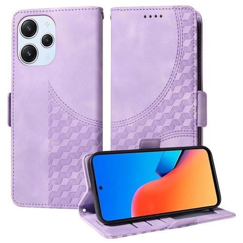 Para Redmi 12 4G / 5G / Note 12R Funda para Teléfono de Cuero Estrellado con Rombos En Relieve (Púrpura)