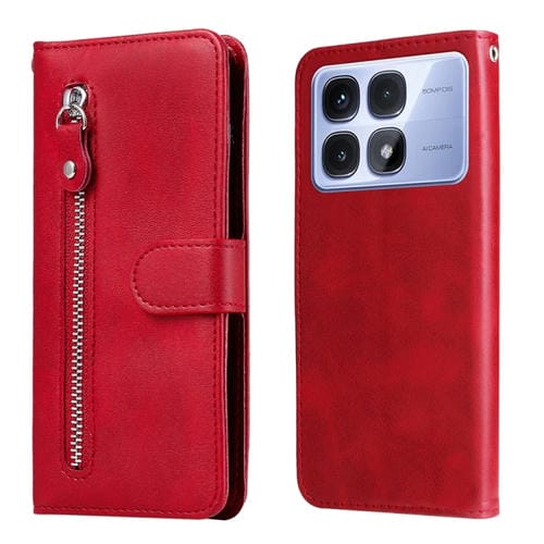 Para Redmi K70 Ultra Fashion Funda para Teléfono de Cuero con Cremallera y Textura de Becerro (Rojo)