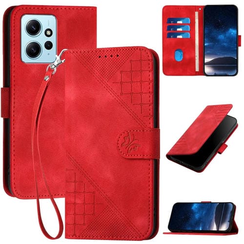 Para Redmi Note 12 4G Yx0080 Grid Butterfly Patrón En Relieve Funda de Cuero con Tapa para Teléfono con Cordón (Rojo)