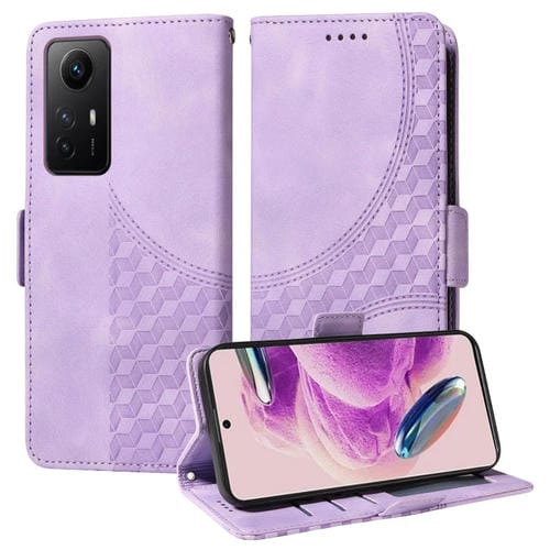 Para Redmi Note 12S 4G Funda para Teléfono de Cuero Estrellado con Rombo En Relieve Global (Púrpura)