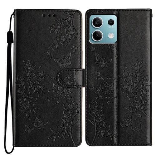 Para Redmi Note 13 5G Funda de Cuero para Teléfono con Mariposas y Flores (Negro)