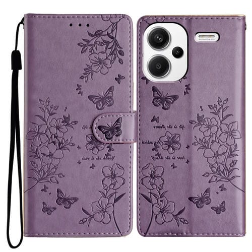 Para Redmi Note 13 Pro+ Funda de Cuero para Teléfono con Mariposas y Flores (Púrpura)