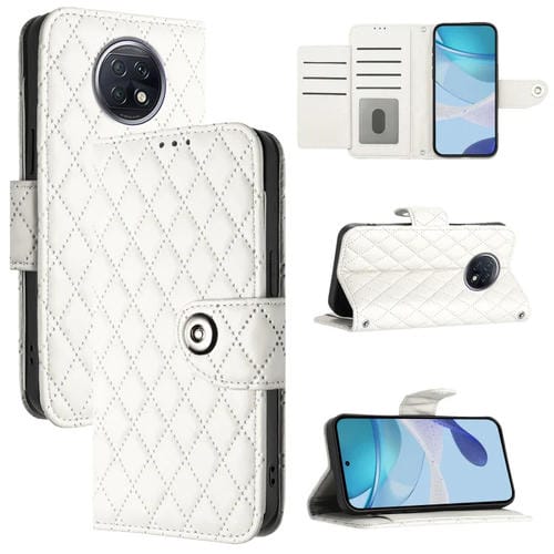 Para Redmi Note 9T Funda de Cuero con Tapa para Teléfono con Textura Rómbica Global y Cordón (Blanco)