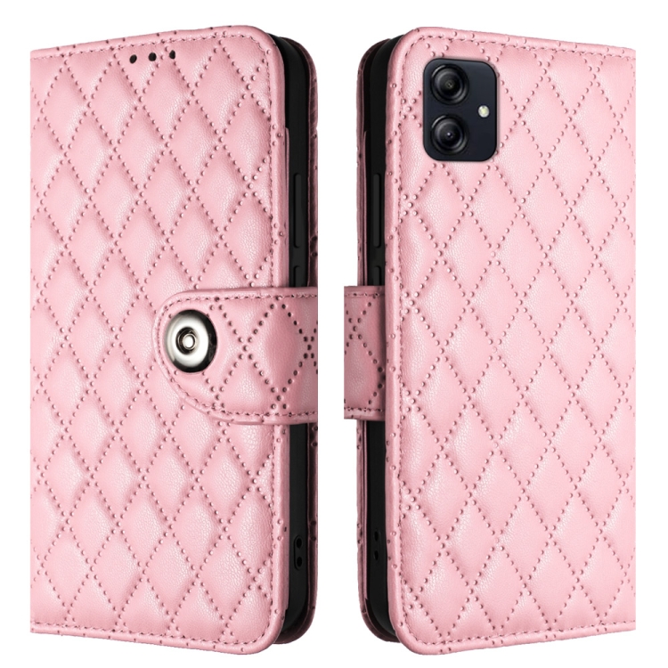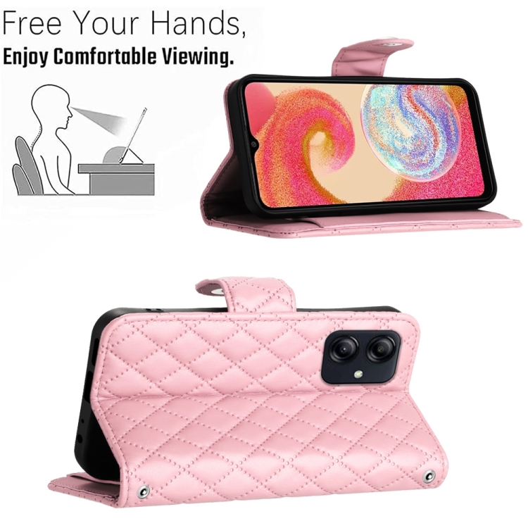 Funda para Samsung Galaxy A05 de Cuero con Tapa Textura Rómbica y Cordón (Rosa)