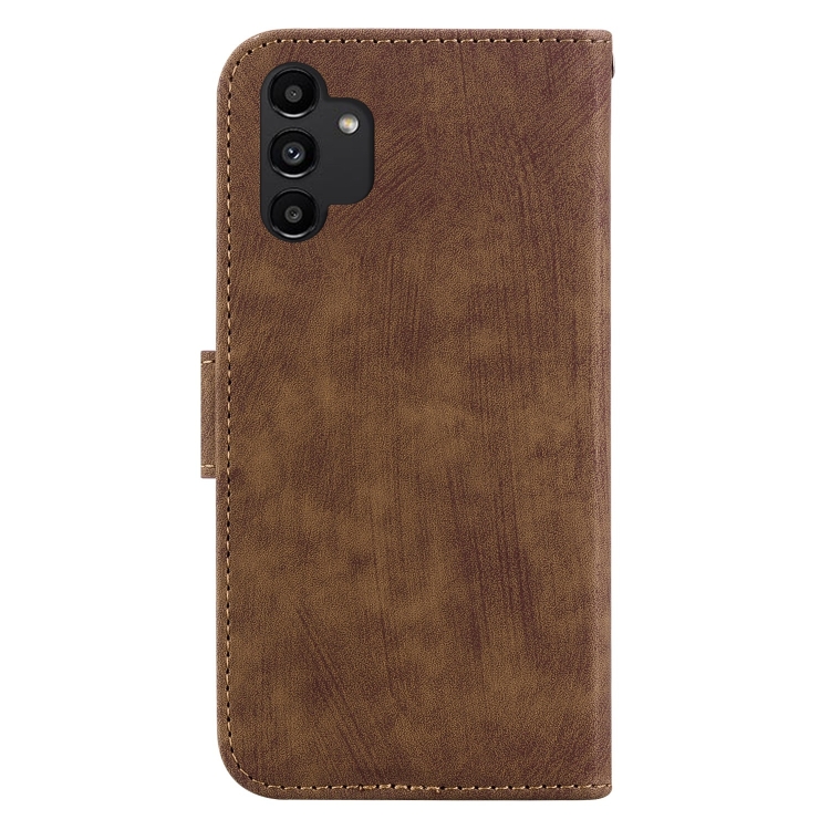 Para Samsung Galaxy A13 4G Funda de cuero con relieve Little Tiger (marrón)