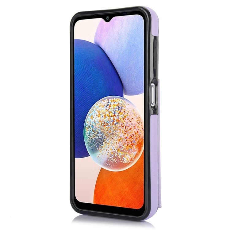 Funda para teléfono Samsung Galaxy A14 4G / 5G Ym007 con soporte para anillo y tarjeta (Púrpura)