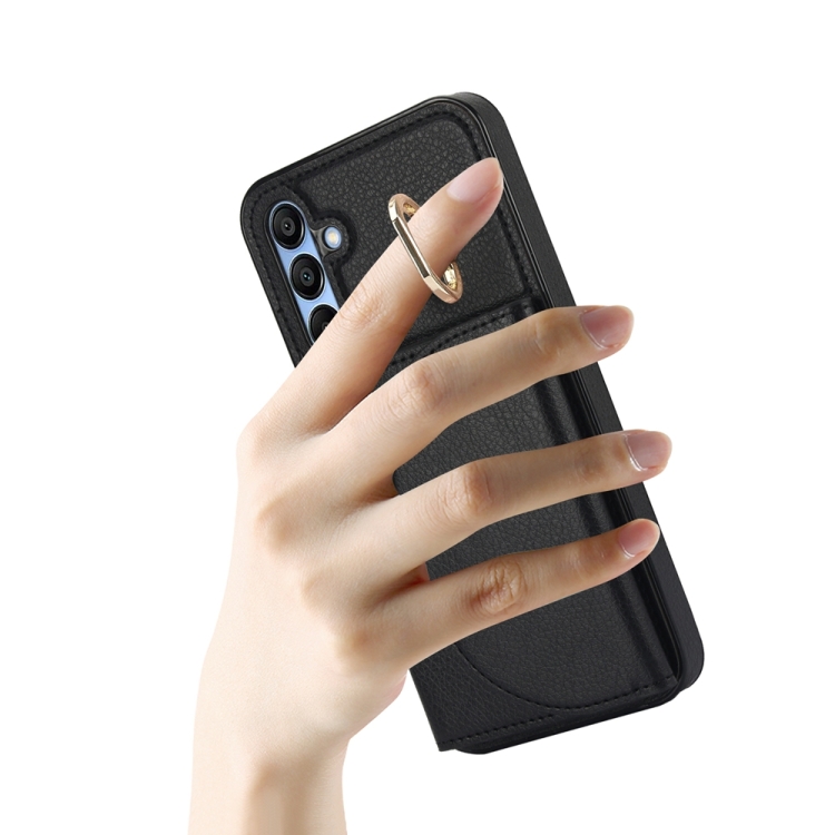 Funda para Samsung Galaxy A15 4G y 5G Ym007 con Soporte para Anillo y Tarjeta (Negro)