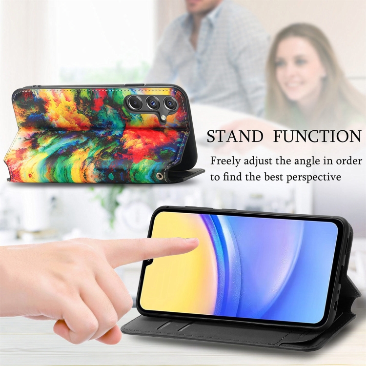 Funda para Samsung Galaxy A15 Caseneo Cuero Magnética Colorida (Nube Colorida)