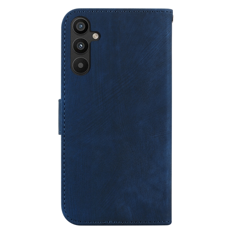 Para Samsung Galaxy A34 5G Funda para teléfono de cuero con relieve Little Tiger (azul oscuro)