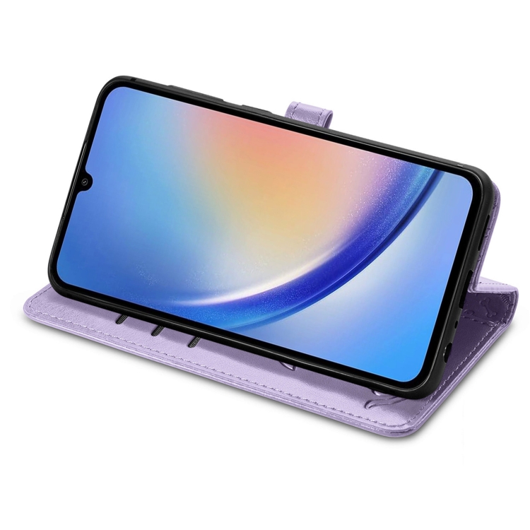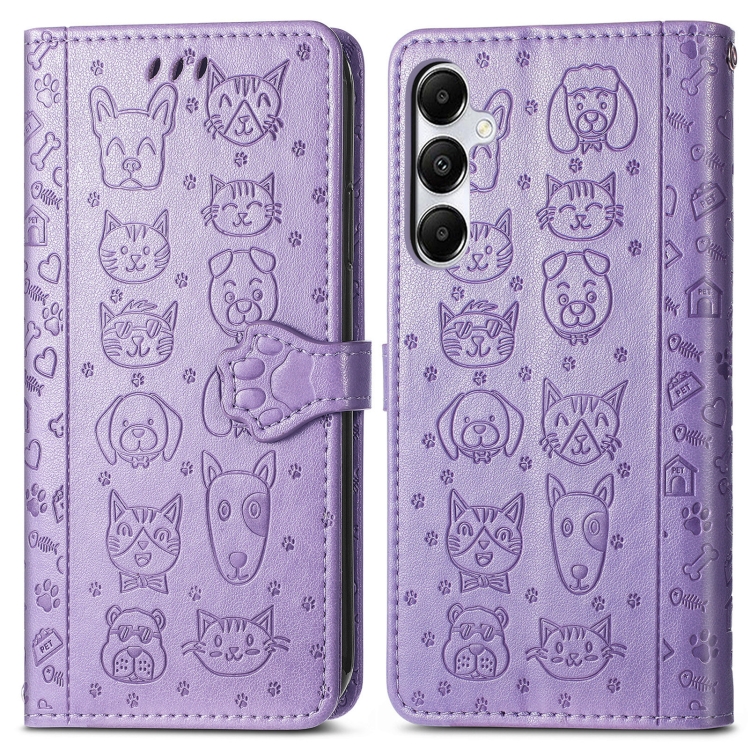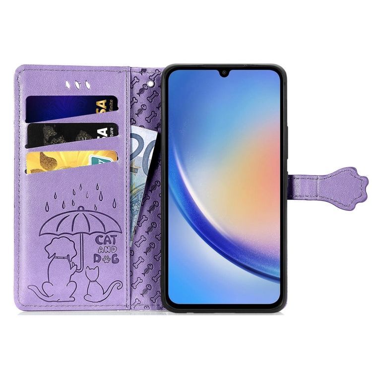 Funda para Teléfono Samsung Galaxy A35 5G Cuero Relieve Perro y Gato (Púrpura)