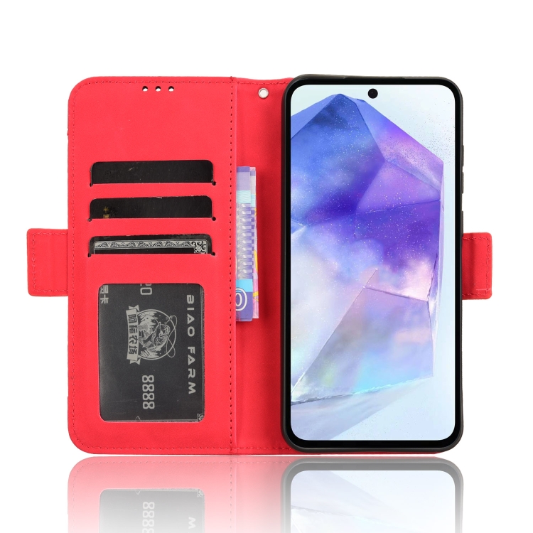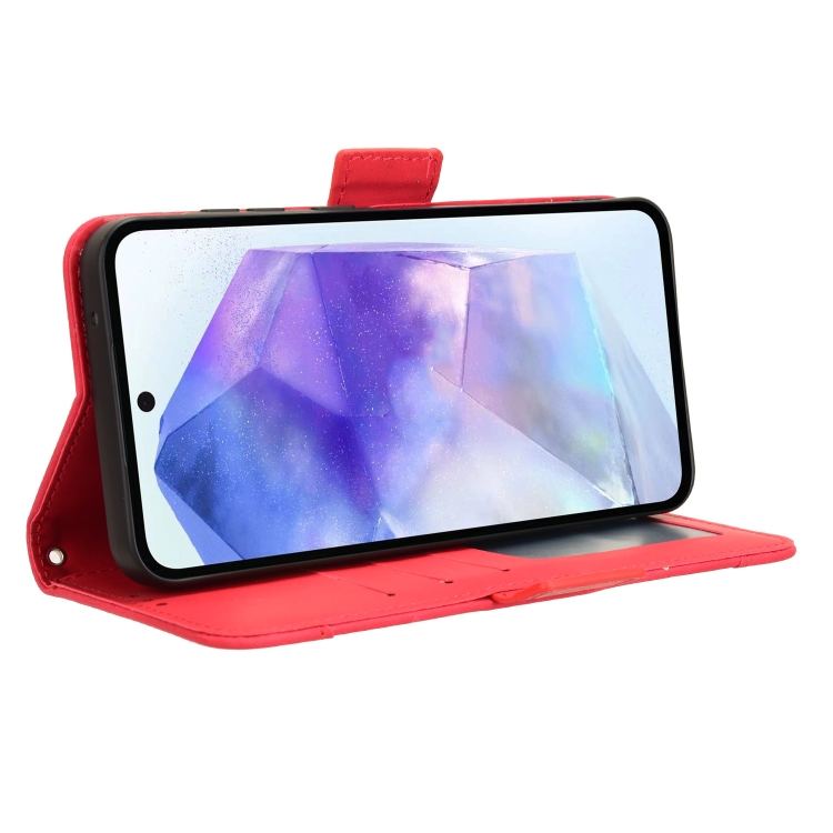 Funda de Cuero Samsung Galaxy A35 5G Skin Feel Textura Becerro Ranuras para Tarjetas (Rojo)