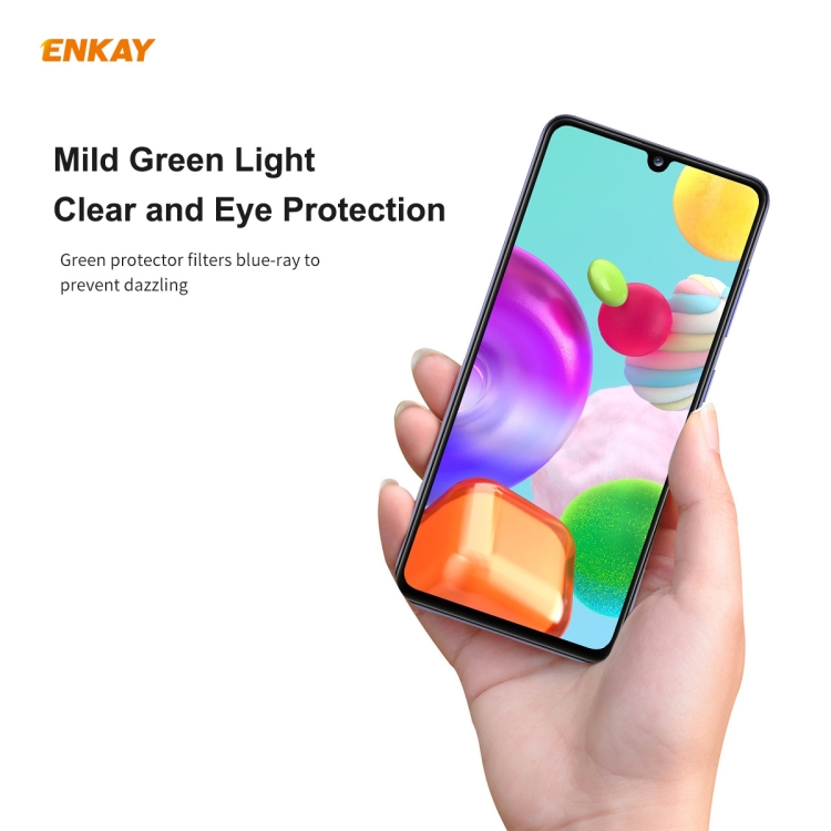 Protector de Vidrio Templado Enkay Hat-Prince para Samsung Galaxy A41 Pantalla Completa Curva 0.26mm 9H 6D Protección Ocular (Verde)