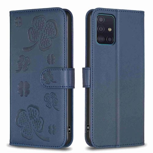 Funda para Samsung Galaxy A51 4G Cuero Relieve Cuatro Hojas (Azul)