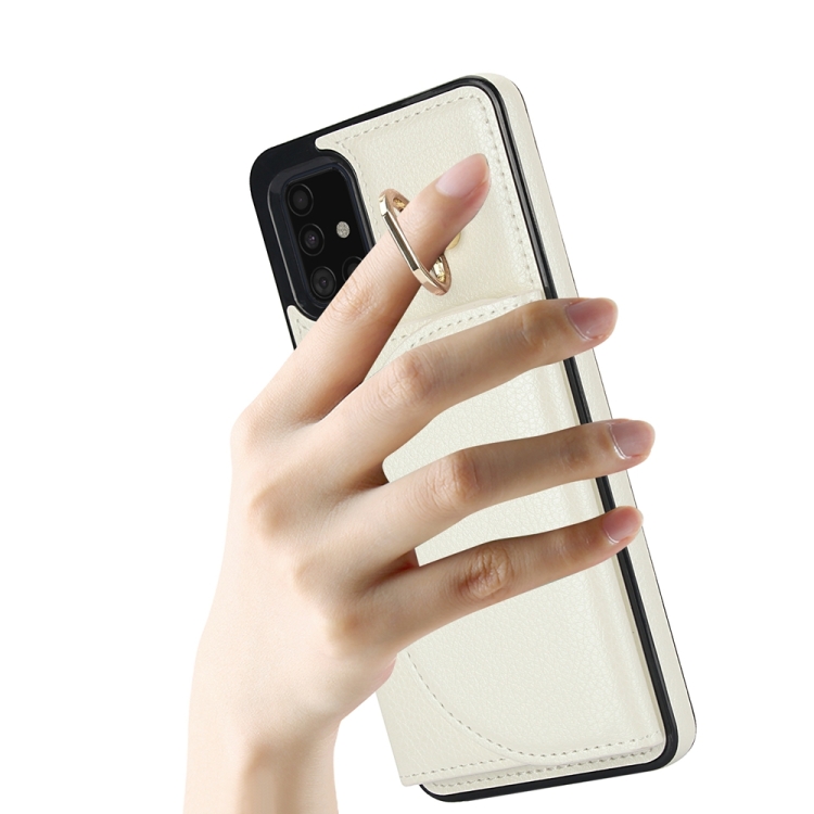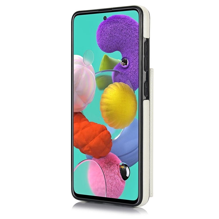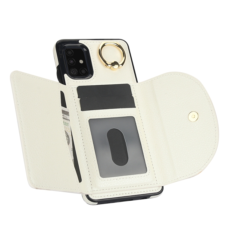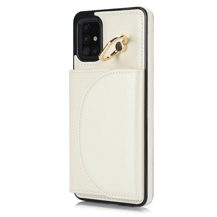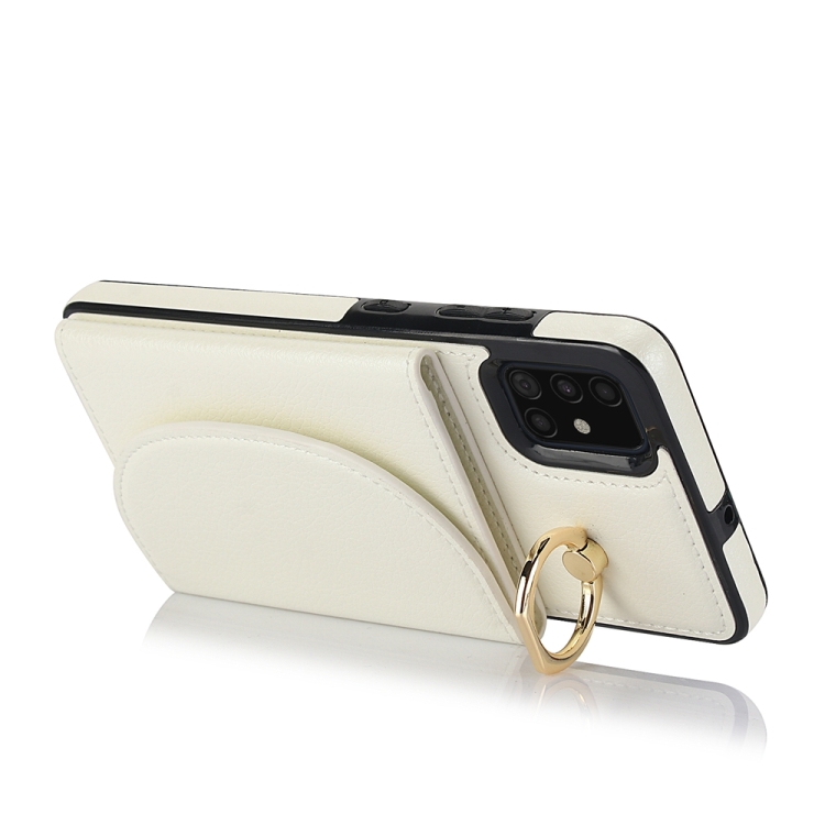 Funda para Teléfono Samsung Galaxy A51 4G Ym007 con Soporte para Anillo y Tarjeta (Blanco)