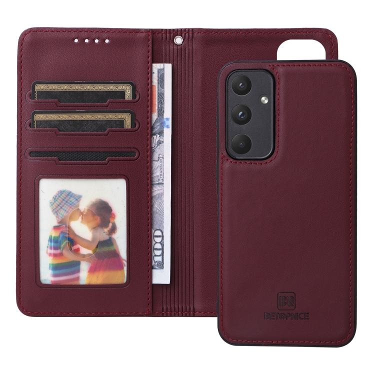 Funda para teléfono Betopnice Bn-005 para Samsung Galaxy A55 2 en 1 Cuero Genuino de Imitación Desmontable (Rojo Vino)