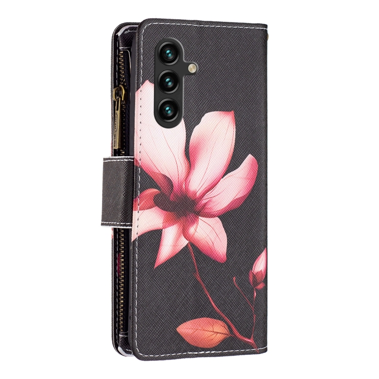 Funda de Cuero para Samsung Galaxy A55 con Cremallera y Patrón Lotus