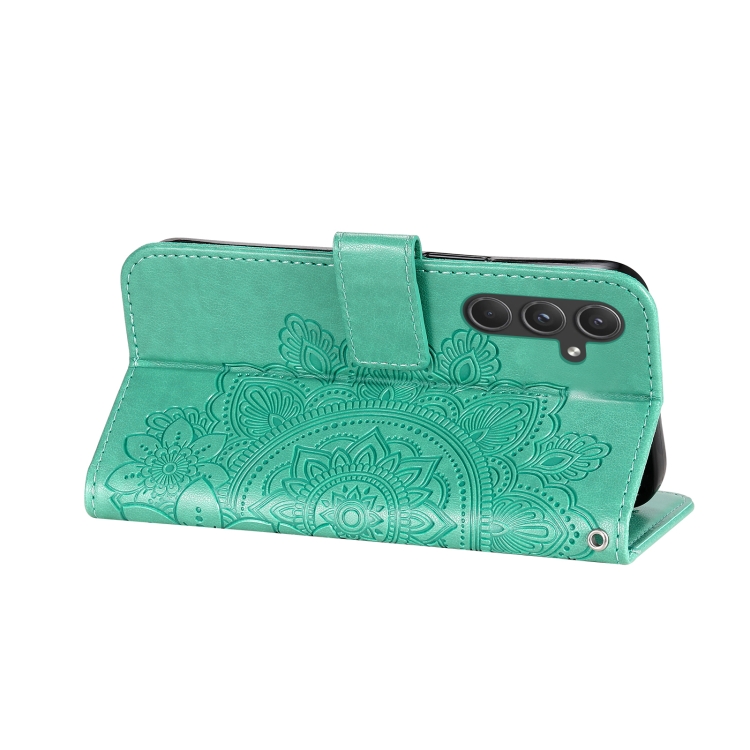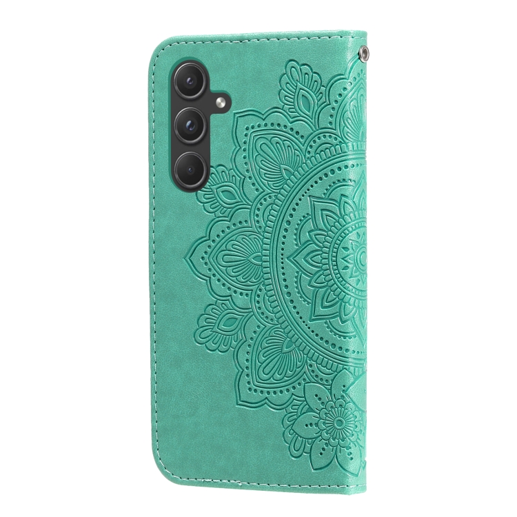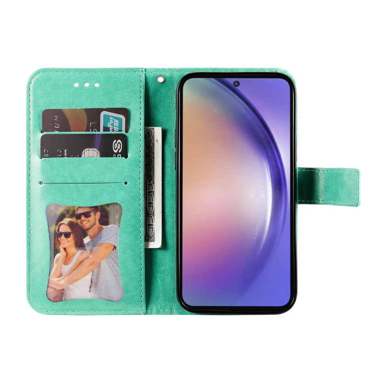 Funda de Cuero Samsung Galaxy A55 Estampado Flores 7 Pétalos (Verde)