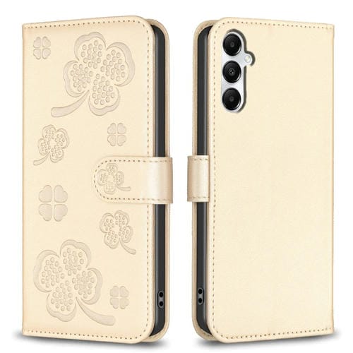 Funda de Cuero Samsung Galaxy A55 con Relieve de Cuatro Hojas (Dorado)