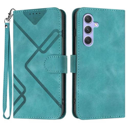 Funda de Cuero Samsung Galaxy A55 Sensación de Piel Patrón de Líneas (Azul Claro)