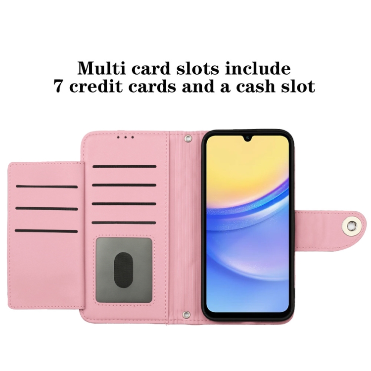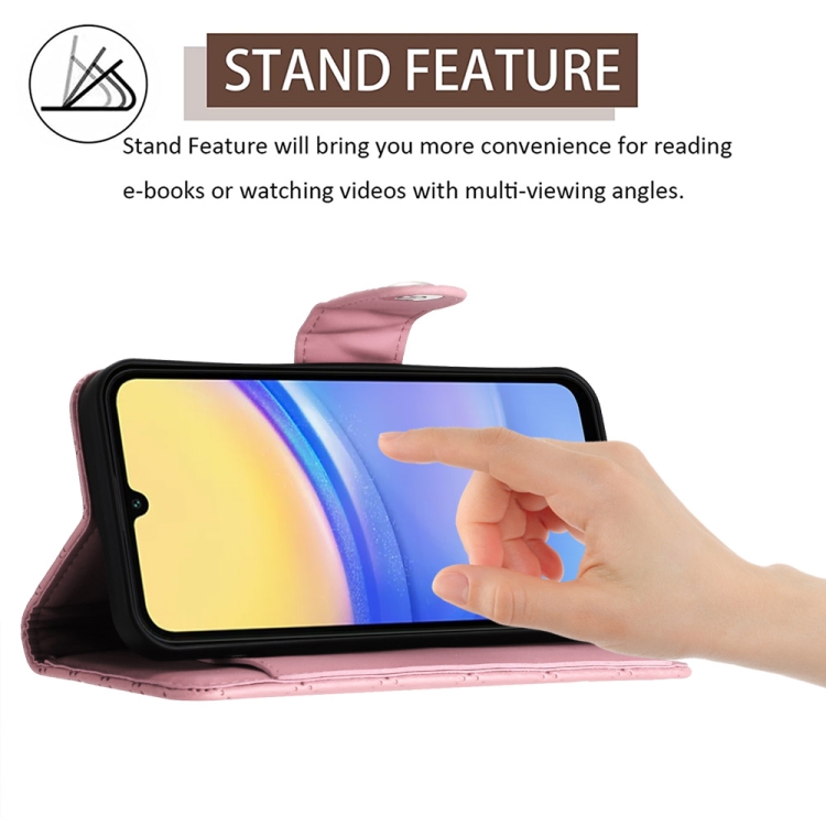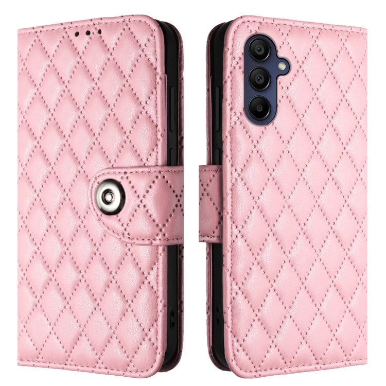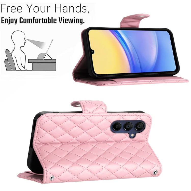 Funda de Cuero para Samsung Galaxy A55 con Tapa Textura Rómbica y Cordón (Rosa)