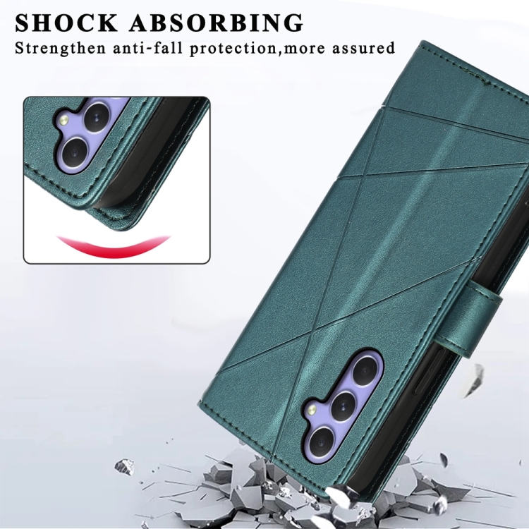 Funda para Teléfono Samsung Galaxy A55 PU con Línea en Relieve y Textura de Cuero Genuino (Verde)
